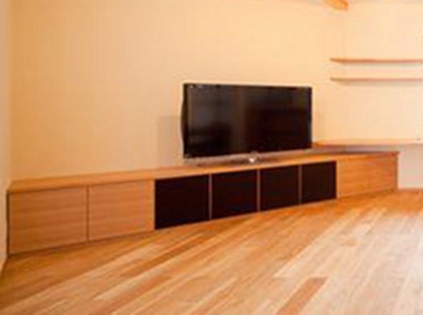 お部屋のコーナーにピッタリはまる形状で、お部屋の色合い・雰囲気にも合うテレビボード。